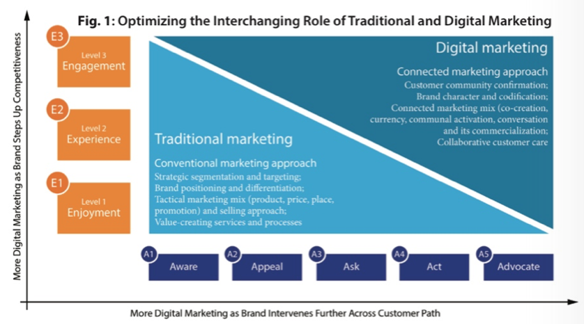 Traditional marketing is still quite effective in building awareness and interest in brands, but digital marketing plays a more prominent role as customers go on to build closer relationships with brands. The goal of digital should be to drive action and advocacy, and in view of greater accountability, the focus should be on driving results, as opposed to traditional marketing where the focus should be on initiating customer interaction. In essence, Marketing 4.0 aims to help marketers identify and prepare for the shifting roles of traditional and digital marketing in building customer engagement and advocacy.