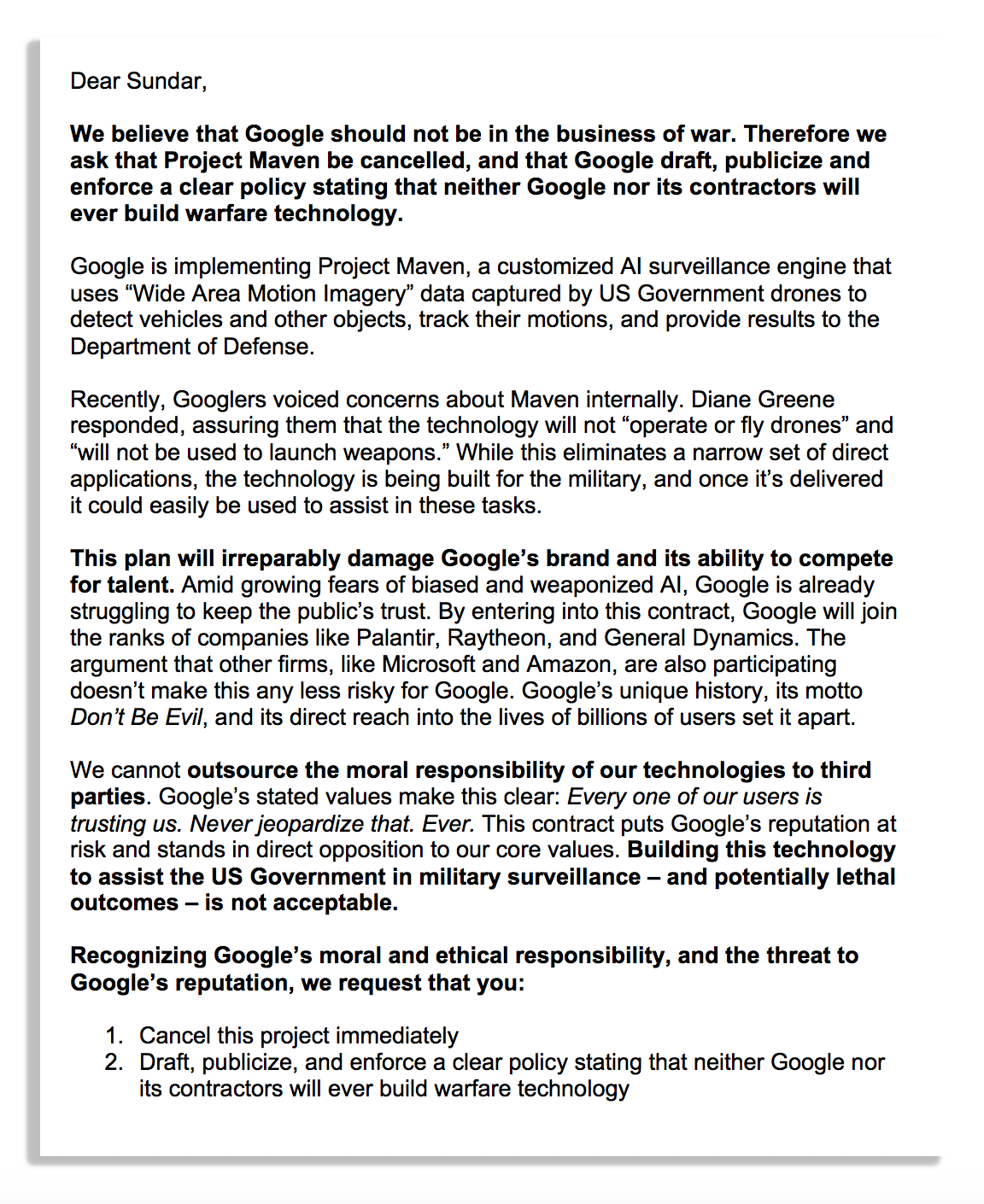 To add to the mix, the International Committee for Robot Arms Control wrote its own letter in support of the Googlers.